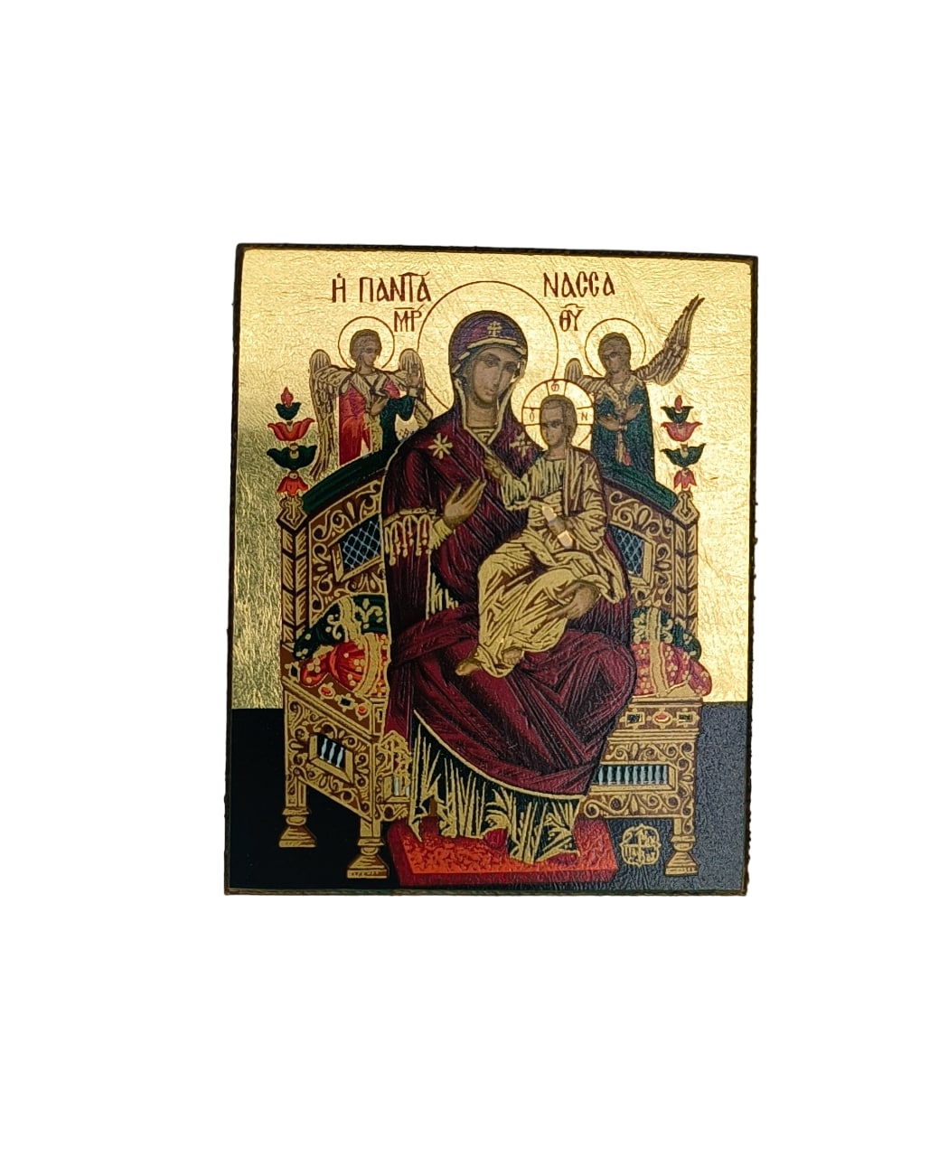 Icoana Maicii Domnului Pantanassa – Imparateasa tuturor provine de la Manastirea Vatopedi, Sfantul Munte Athos, Grecia. Aceasta icoana cu foita de aur, pe panou de lemn, este o reproducere de cea mai buna calitate a icoanei facatoare de minuni a Maicii Domnului Pantanassa – Imparateasa tuturor, pictata original de parintii de la Sfanta Mare Manastire Vatopedi, cu sute de ani in urma, dupa traditia bizantina.