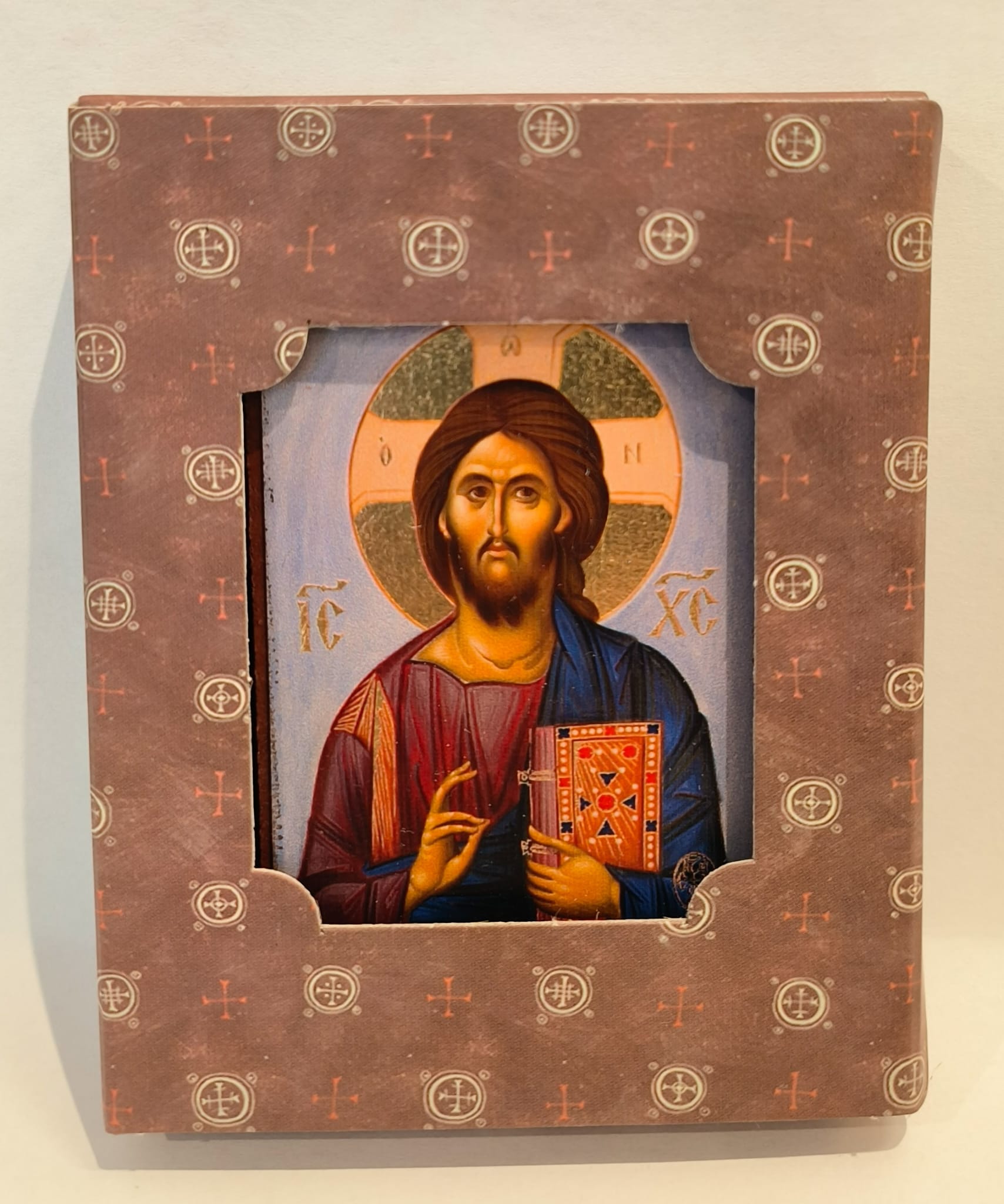 Icoana Mantuitorului provine de la Manastirea Xenofont, Sfantul Munte Athos, Grecia. Aceasta icoana cu foita de aur, pe panou de lemn, este o reproducere de cea mai buna calitate a icoanei Mantuitorului, pictata original de parintii de la Manastirea Xenofont, dupa traditia bizantina.